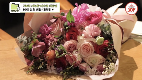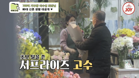 꽃다발 뒤에 숨기고 들어오심