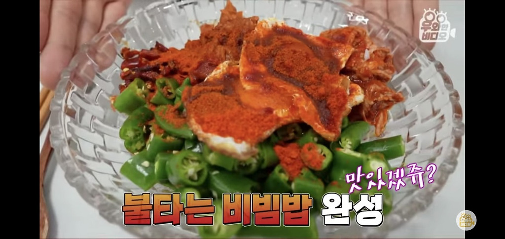 실비김치+청양고추+태국쥐똥고추?+캡사이신가루+고추기름 비빔밥