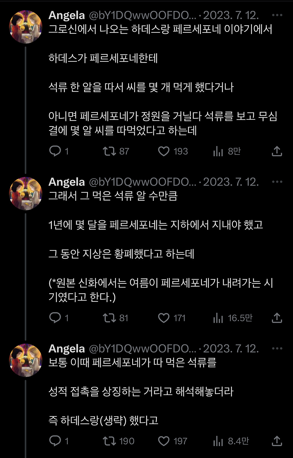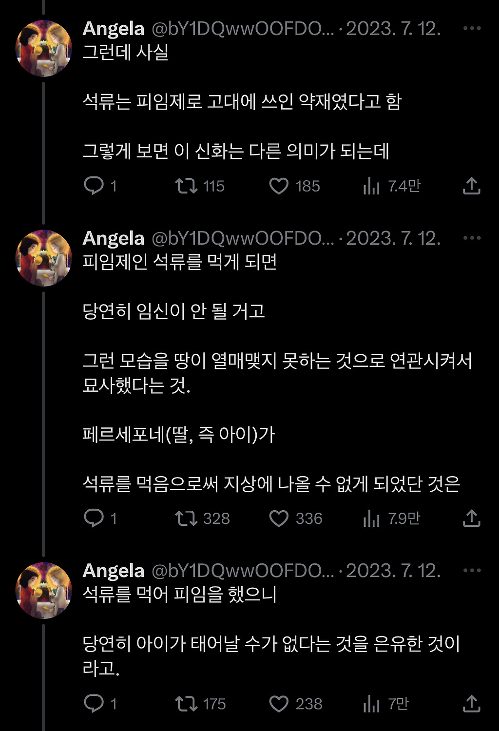 그리스 로마 신화의 페르세포네 이야기에서 석류는 사실...