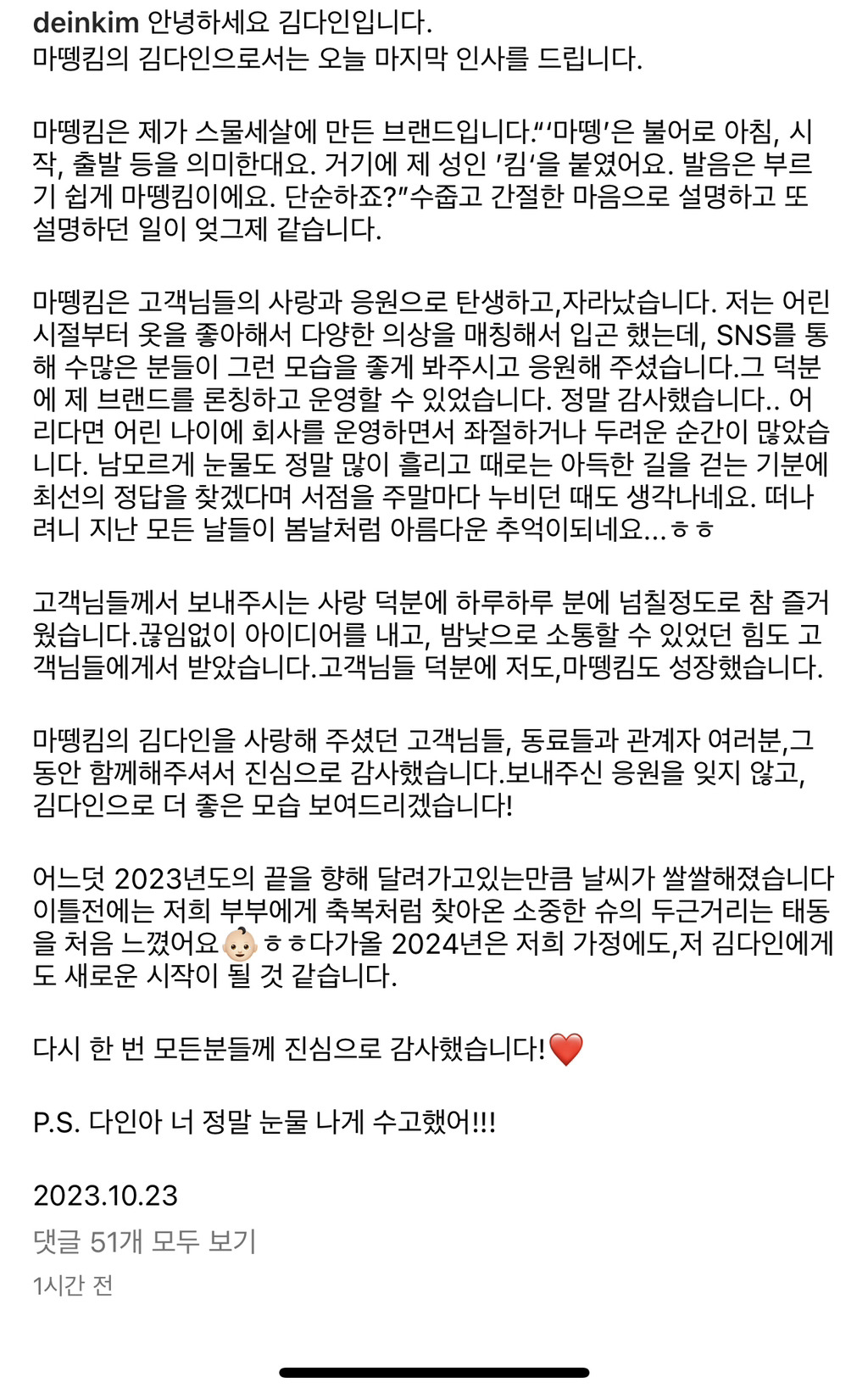 예전에 잠시 쉰다고 공지올렸다가오늘 올라온 글대표나이는 92년생인가 93년생인가 ...남편 브랜드도 같이 대박났음 (더뮤지엄비지터 대표랑 부부임)