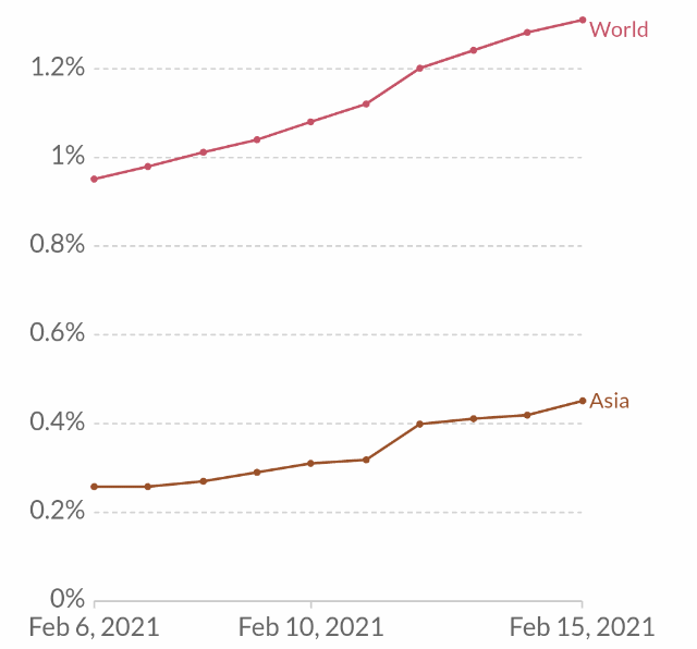 Our vaccination dataset uses the most recent official numbers from governments and health ministries worldwide. Population estimates for per-capita metrics are based on the United Nations World Population Prospects. Income groups are based on the World Ban