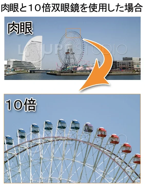 배율이 가장 기본적으로 맨눈에 비해 몇배 크게 보이는지 나타내는 요소임