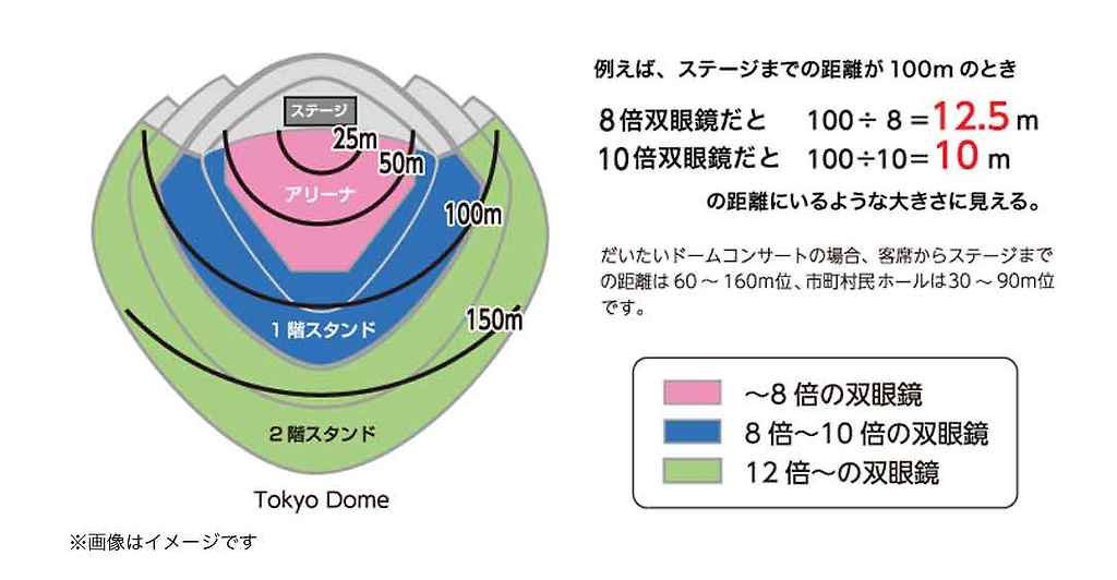 덤으로 배율별 체감짤과 도쿄돔 기준 추천배율. 외곽쪽이면 10배율 이상이 좋음.