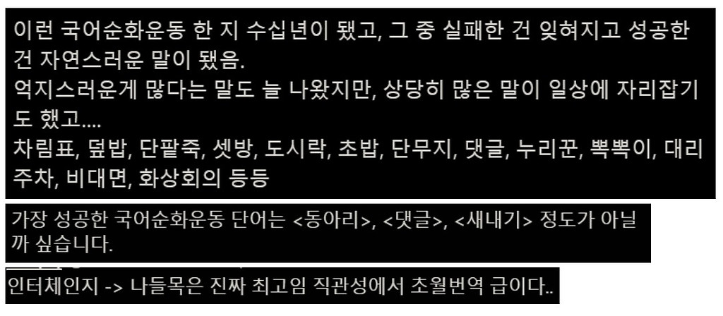 무리수같은 국어순화운동을 계속 하는 이유