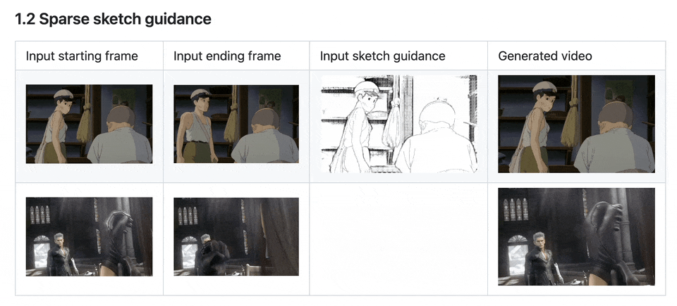 더 많은 샘플 및 이전 연구와의 비교 https://doubiiu.github.io/projects/ToonCrafter/