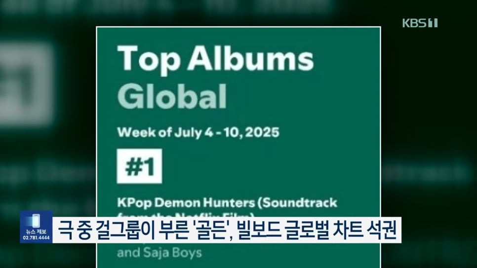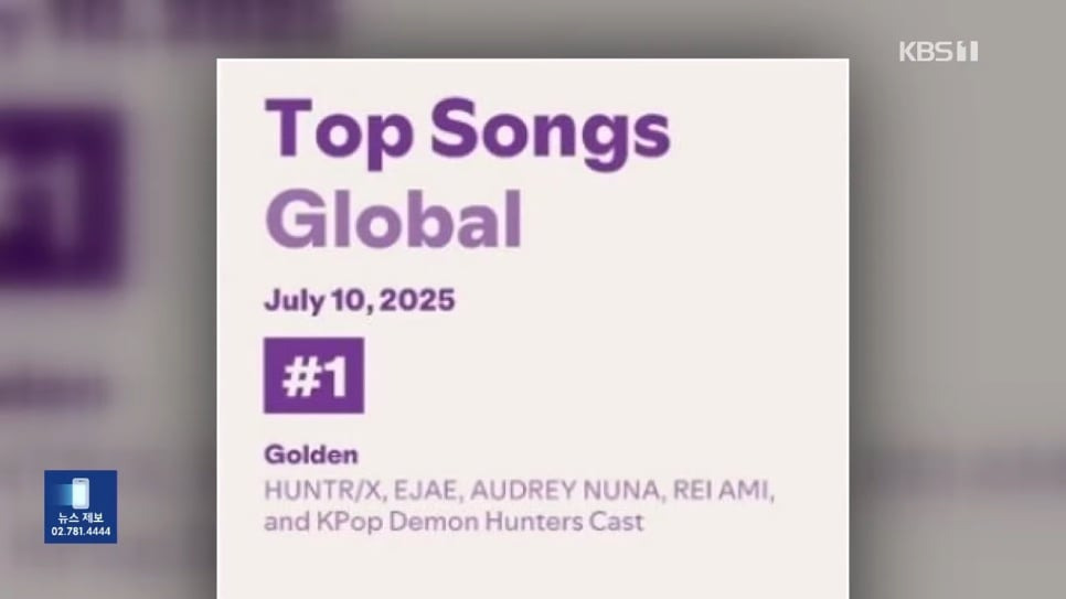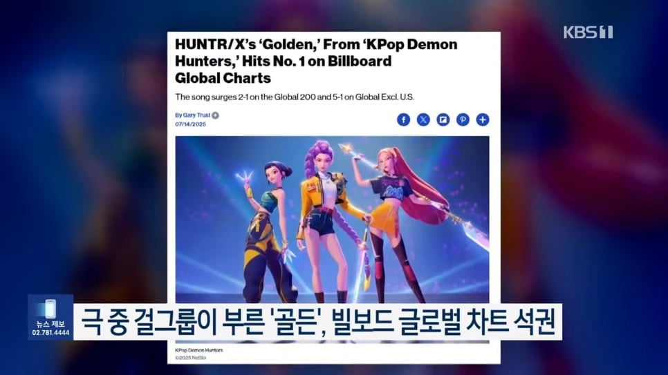 작품 속 주인공이자 가상의 K팝 걸그룹 '헌트릭스'가 부른 노래 '골든'이 이번 주 빌보드 글로벌 차트에서 1위를 한 건데요.
