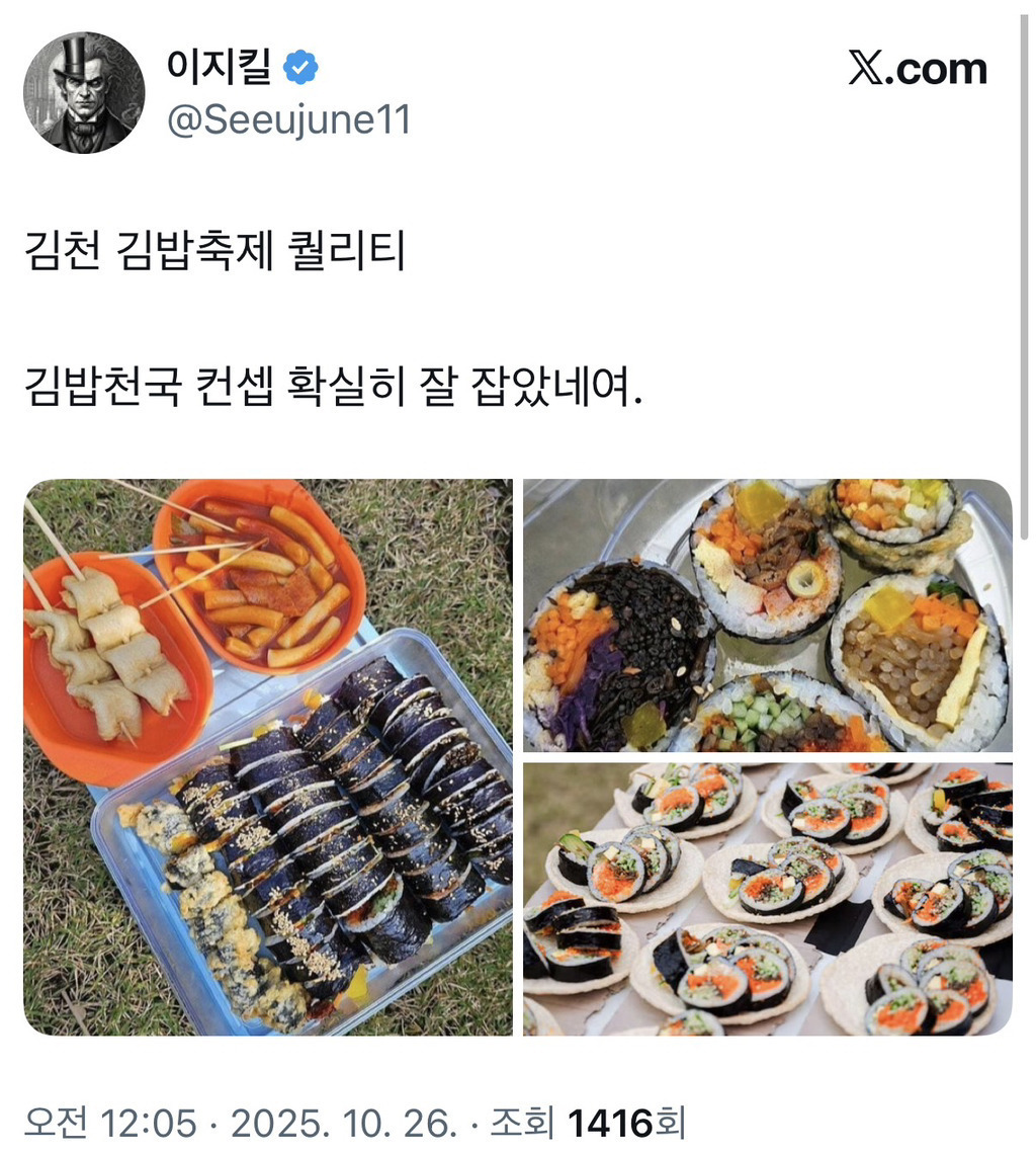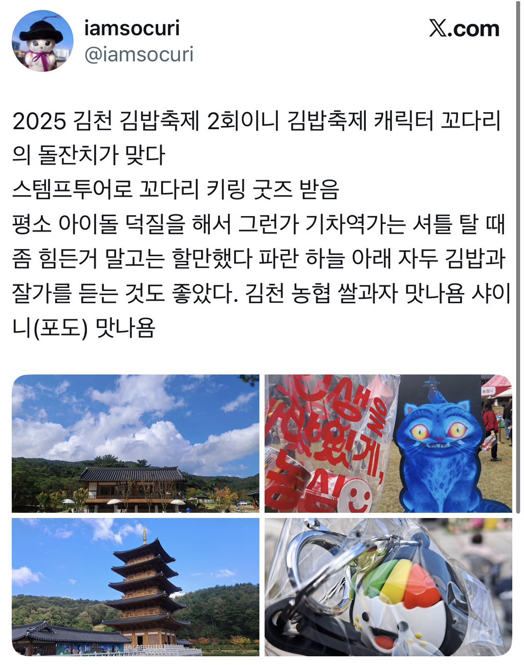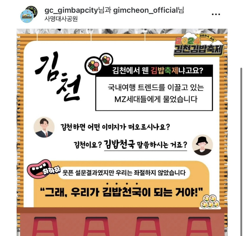 마지막으로 김천 인스타에 올라온 귀여운 꼬달이...김밥 꼬다리를 제일 좋아한다고 함(+) 김천 김밥축제 탄생비화