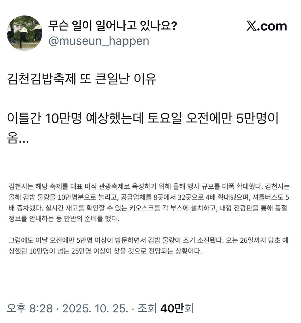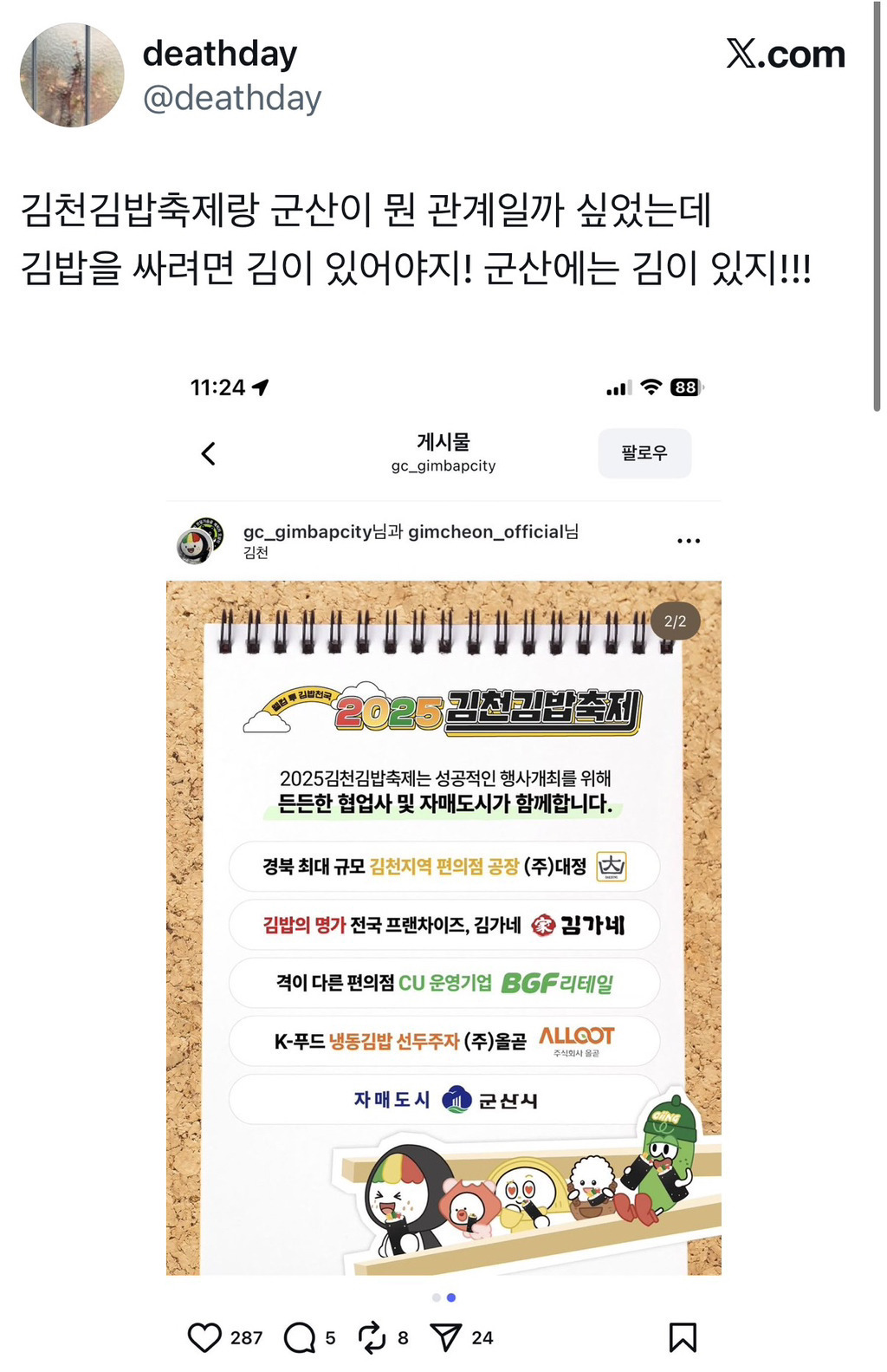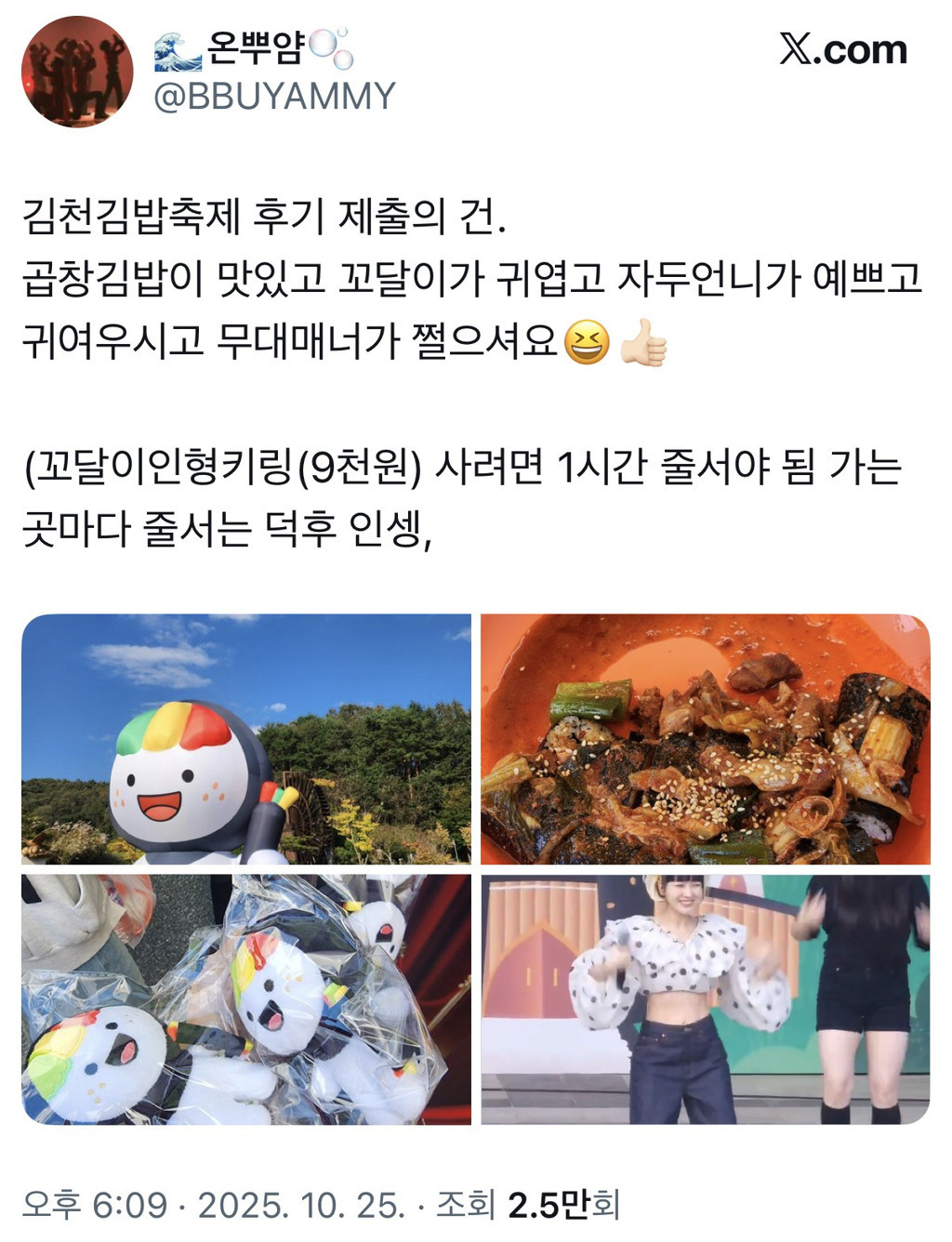 마지막으로 김천 인스타에 올라온 귀여운 꼬달이...김밥 꼬다리를 제일 좋아한다고 함(+) 김천 김밥축제 탄생비화