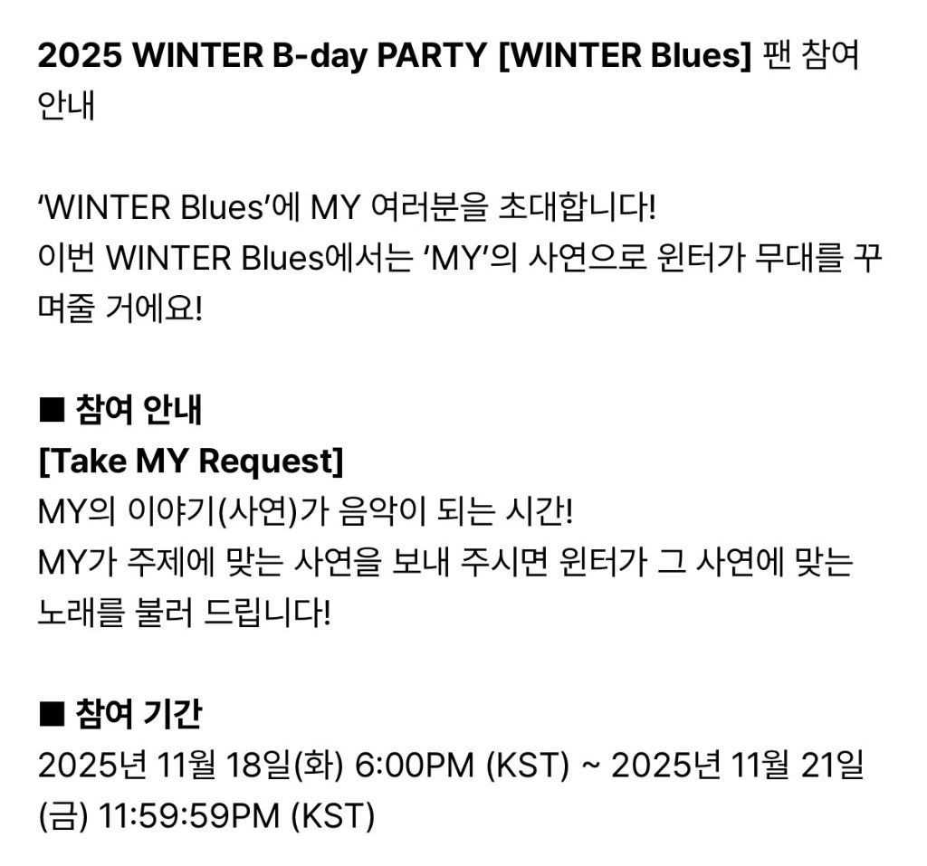 2025 WINTER B-day PARTY [WINTER Blues] 팬 참여 안내