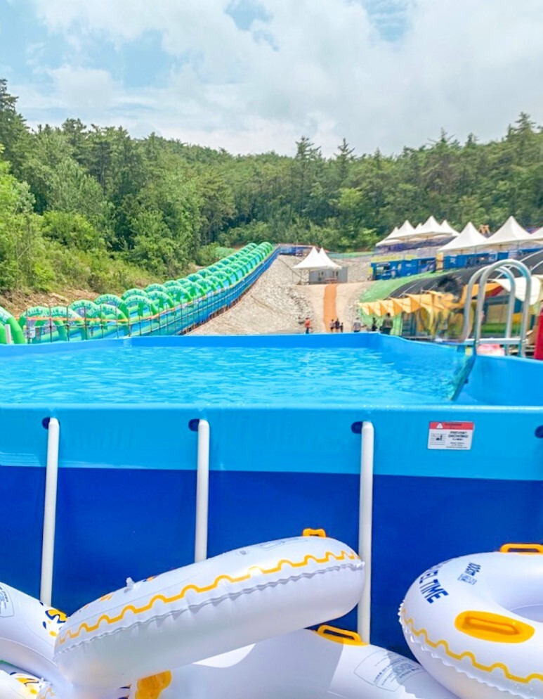 부안 변산해수욕장의 아름다운 해변을 바라면서 워터축제를 즐길 수 있는 부안워터페스티벌!!워터슬라이드 + 에어바운스 + 워터풀 + 놀이기구 등 마감시간까지 이용가능 하다!