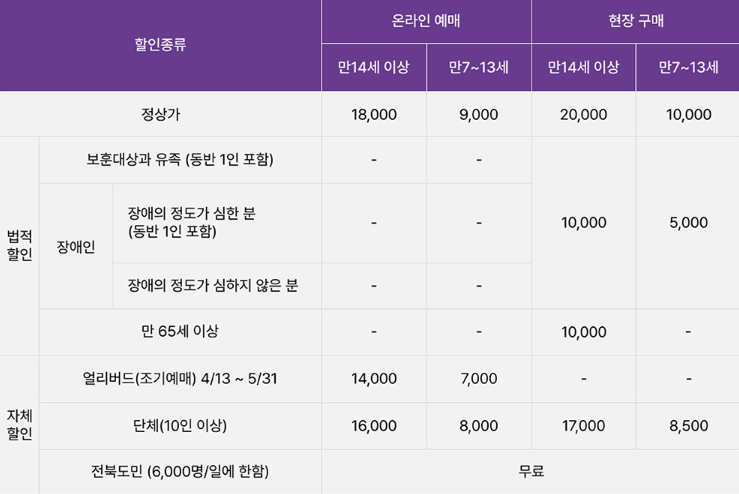 * 운영시간 09:00~18:00 (입장마감 17:00)