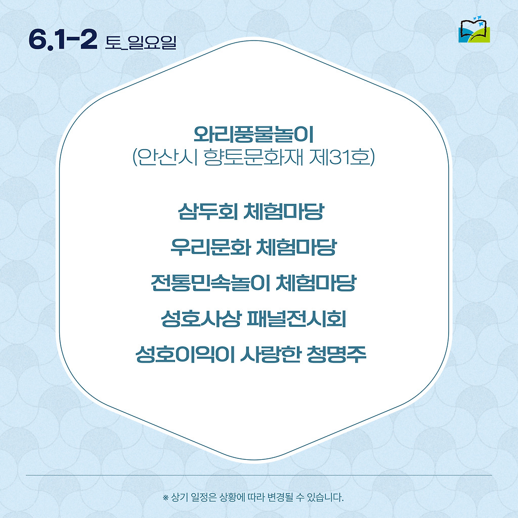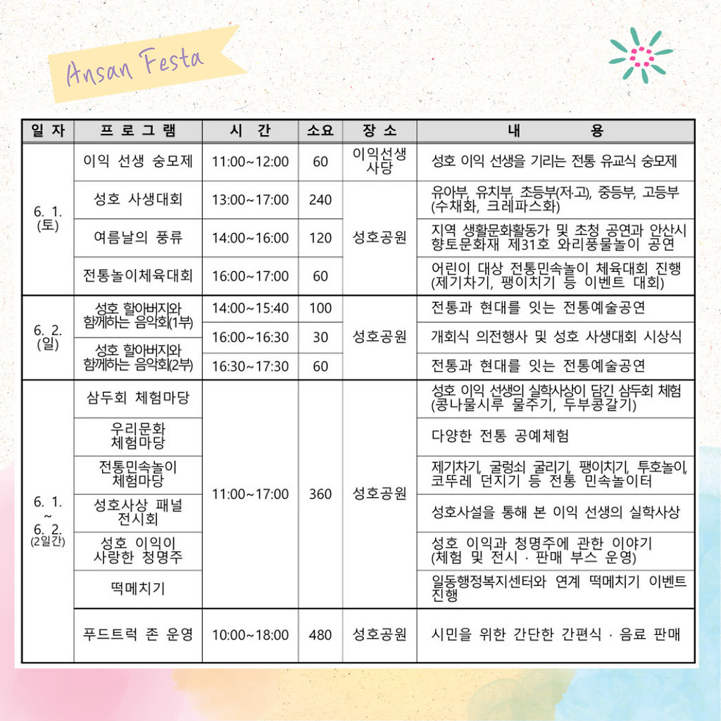 댓글 1☞ 안산시 대표 인물인 성호 이익 선생의 업적과 정신을 기리기 위한 '성호문화제'가 벌써 27회를 맞이합니다. 오랜 전통으로 입증된 볼거리, 즐길거리 많은 축제랍니다.
