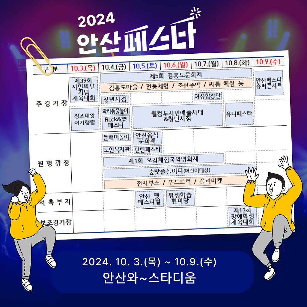 축제맛집 안산시에 차려진 축제 진수성찬 ‘2024 안산페스타’ 일정을 공개합니다.