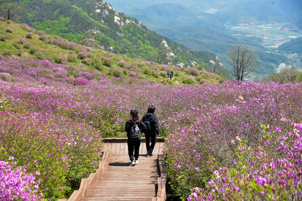 전국 최고의 철쭉 명소인 황매산은 능선을 사이에 두고