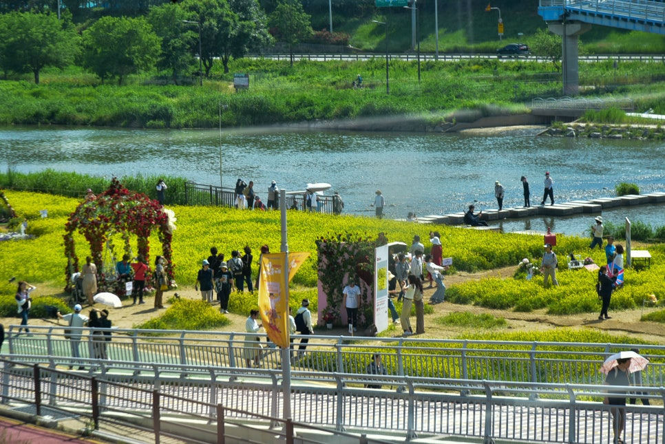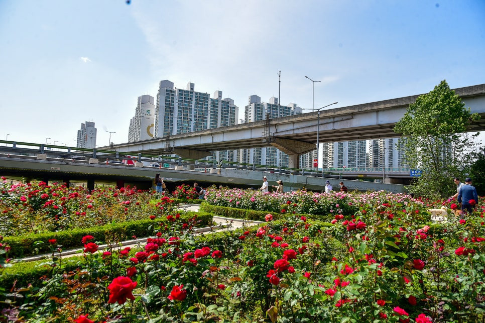 중랑천 장미 공원에서 매년 서울 장미 축제 열려요.