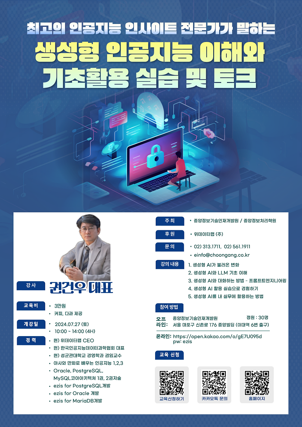 [ 위데이터랩&중앙정보기술인재개발원 온,오프라인 강의 ] 생성형 인공지능 이해와 기초활용 실습 및 토크