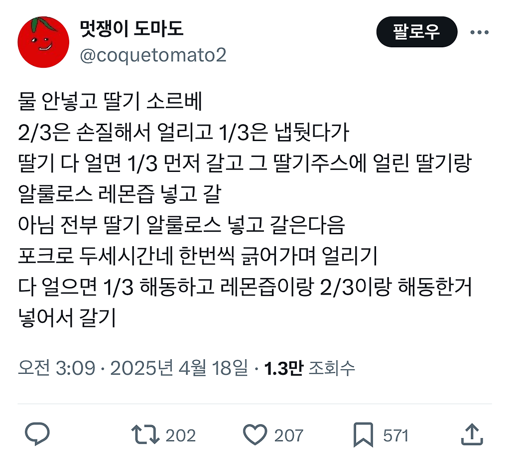 딸기 500g으로 딸기 소르베 한 가득 만드는 법