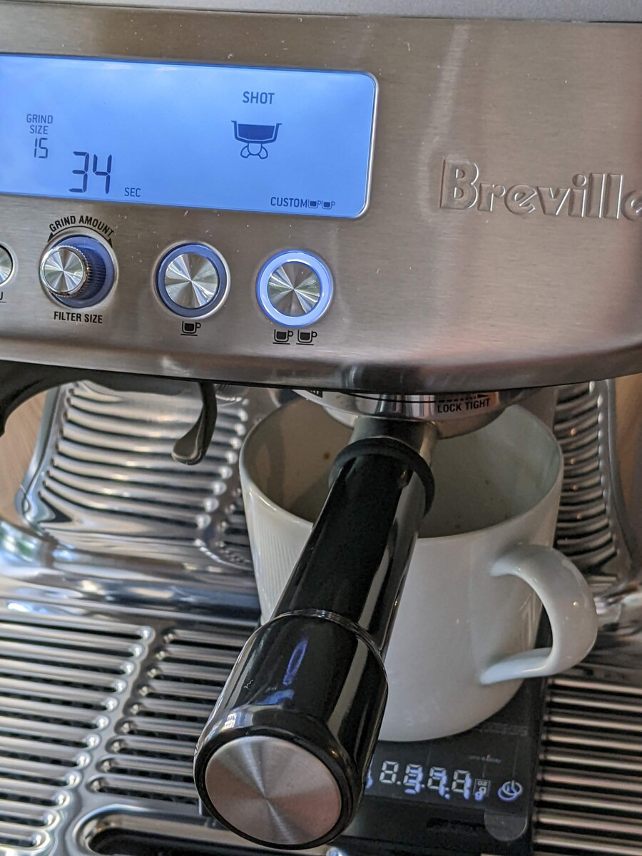 18g의 커피가 쓰였으니 36g의 에스프레소를 뽑아야 되는데,