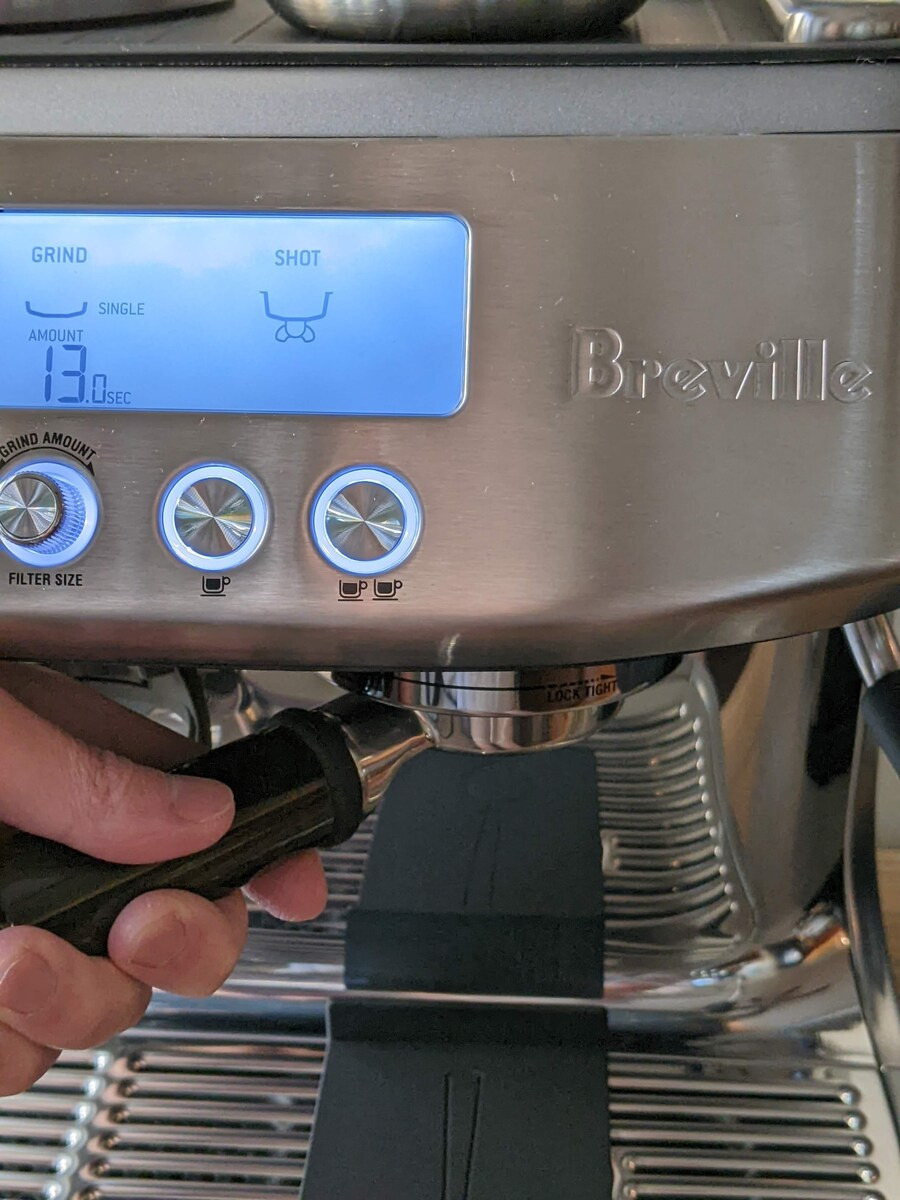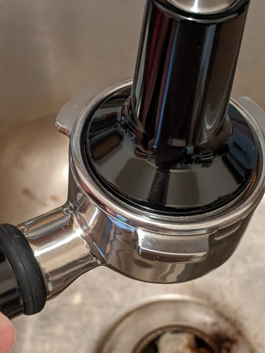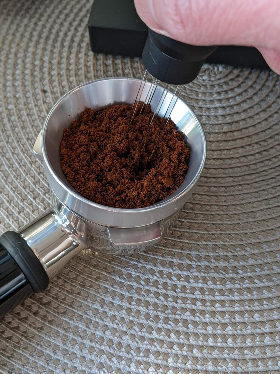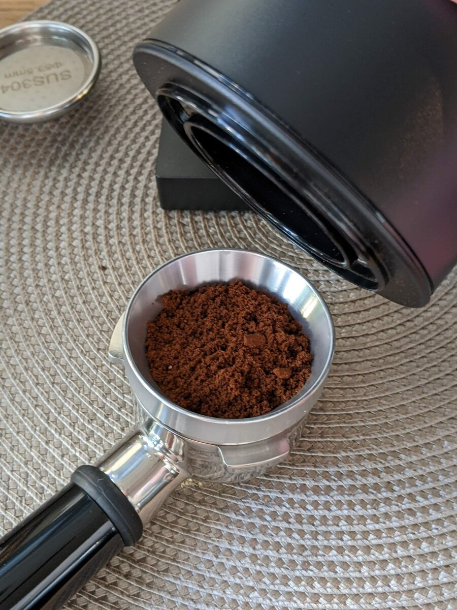 우선 커피를 그라인더로 갈아서 국자 같이 생긴 "포타필터"에 담습니다.