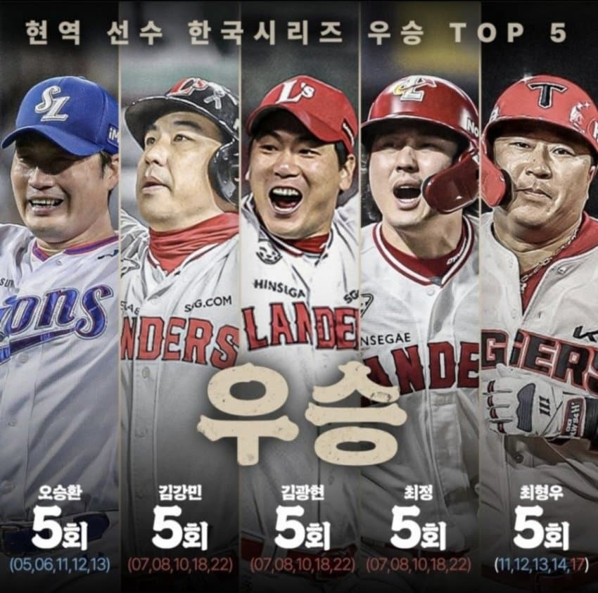 KBO 현역 선수 한국시리즈 우승 TOP 5