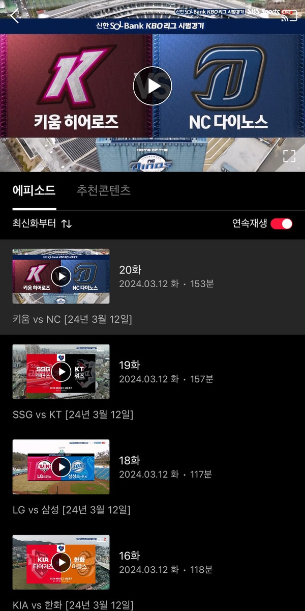 지난주 시범경기 시작하고 야구경기영상을 드라마처럼 회차로 올려서 야구팬들이 난리가 남