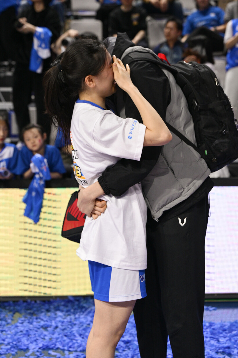 이후 박지수는 우승엔 실패했지만 절친 나윤정의 우승을 진심으로 축하해주며 우리은행 팬들에게도 큰 응원을 받음