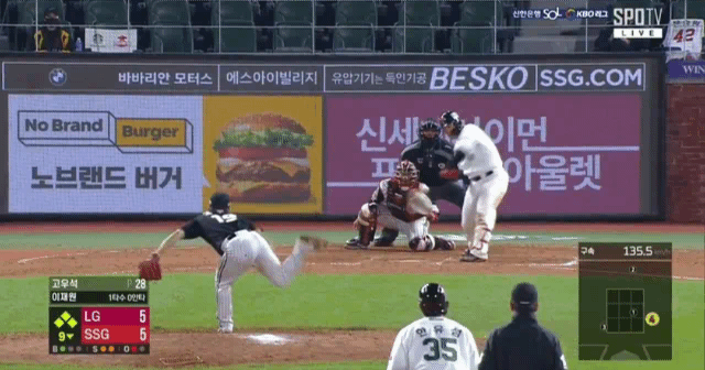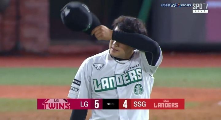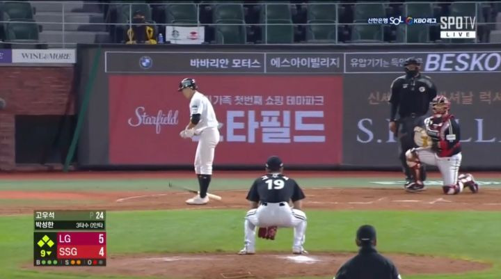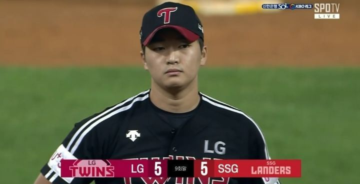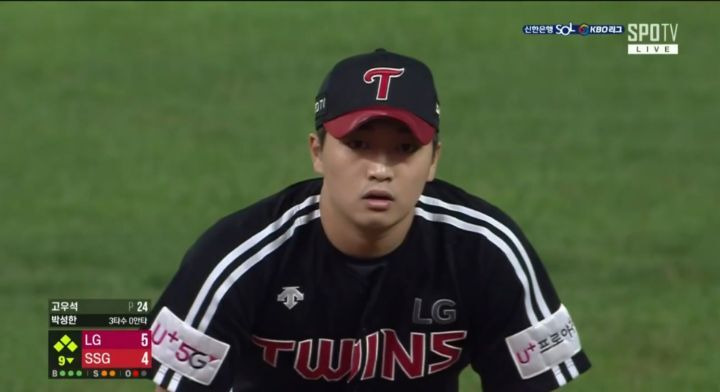 9회말 5대4 LG 리드 상황
