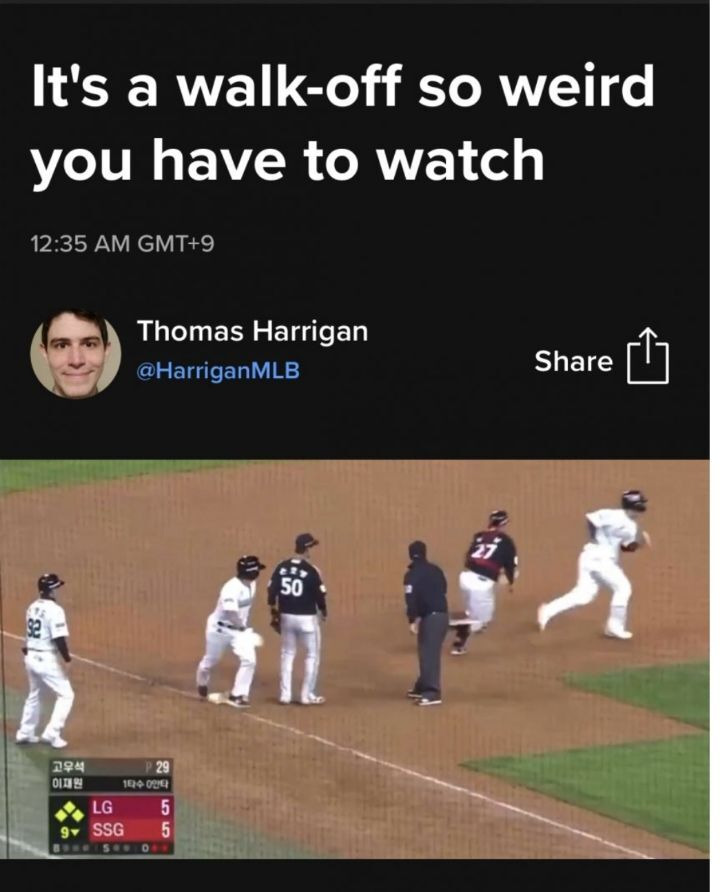 역대급 혼란이었던 야구 세계 최초 끝내기 경기 상황