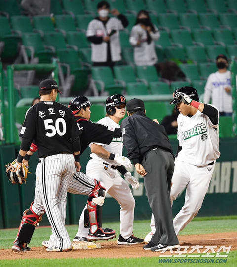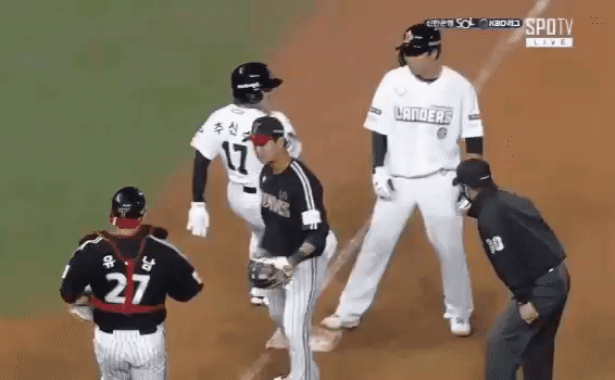 3. 근데 순간 이를 착각한 포수가 3루 주자 태그도 안하고