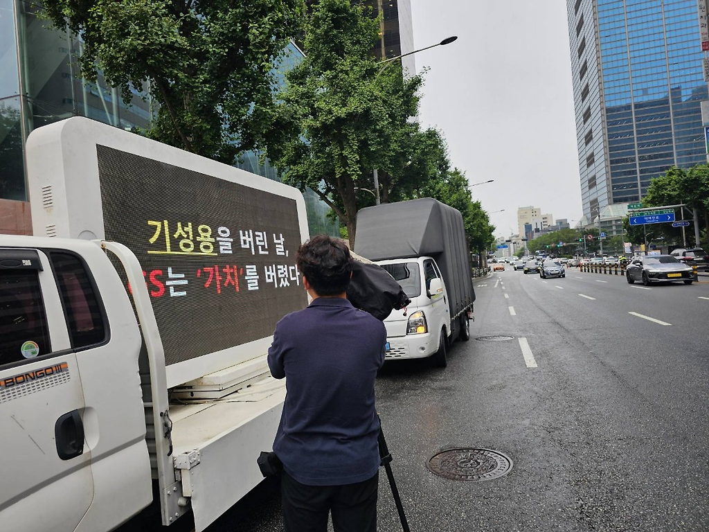 기성용 이적문제로 트럭과 화환 총출동 중인 GS 본사