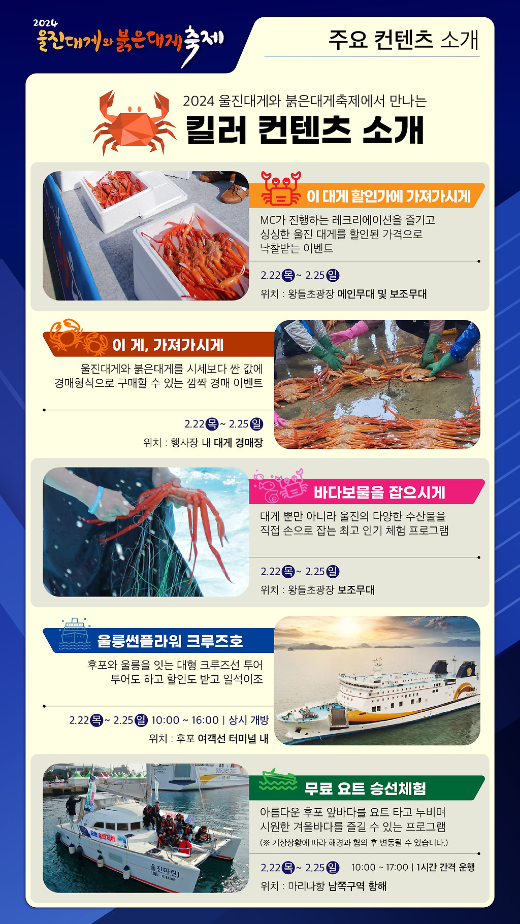 2월 22일부터 25일까지 열리는 울진 대게축제! 겨울 먹거리 하면 수산물 갑각류~!