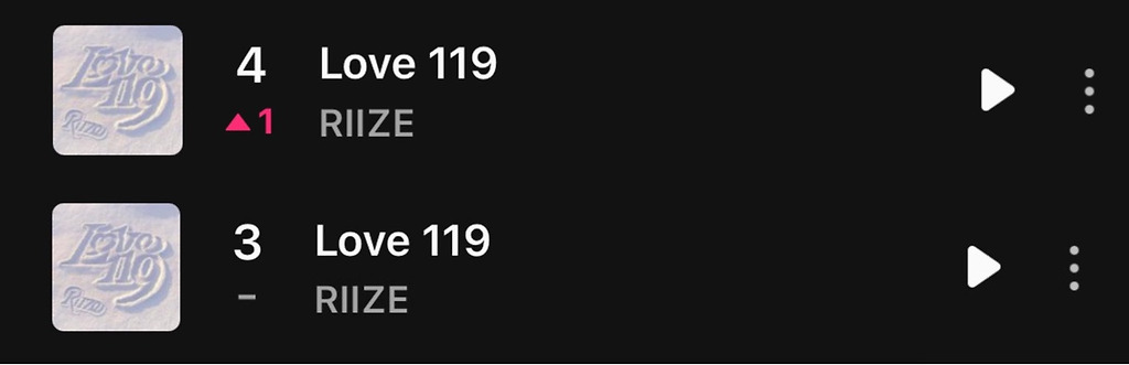 라이즈 Love 119 멜론 TOP 100 4위 피크