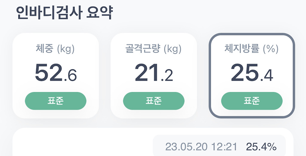 어느 순간 인바디 보다는 눈바디를 보고 있어서 인바디는 한달에 어쩌다가 한번 하거나 아예 안하는 중입니다.