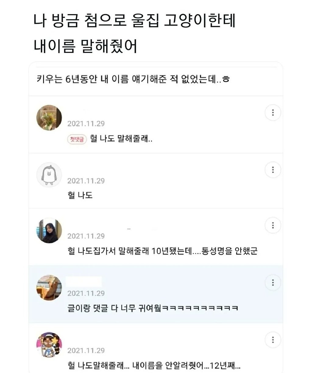 생각해보니까 나도 안 알려줬어 이따 통성명해야지