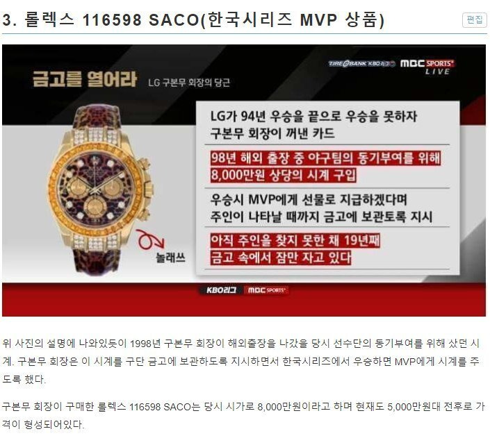 한국시리즈 Mvp 시계는 주인도 못찾고 수리들어감