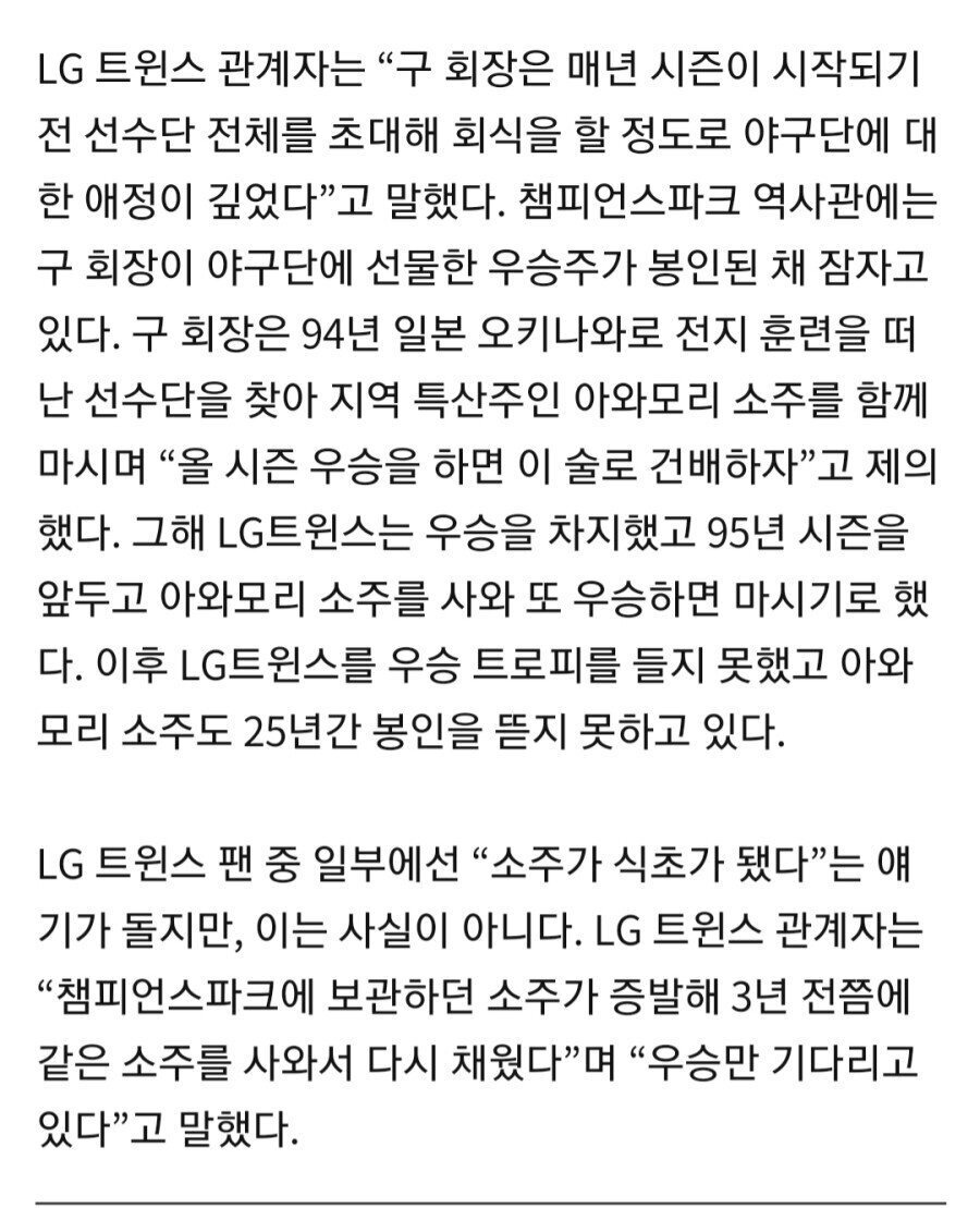 LG 우승시 먹기로 했던 우승주와 시계 상태