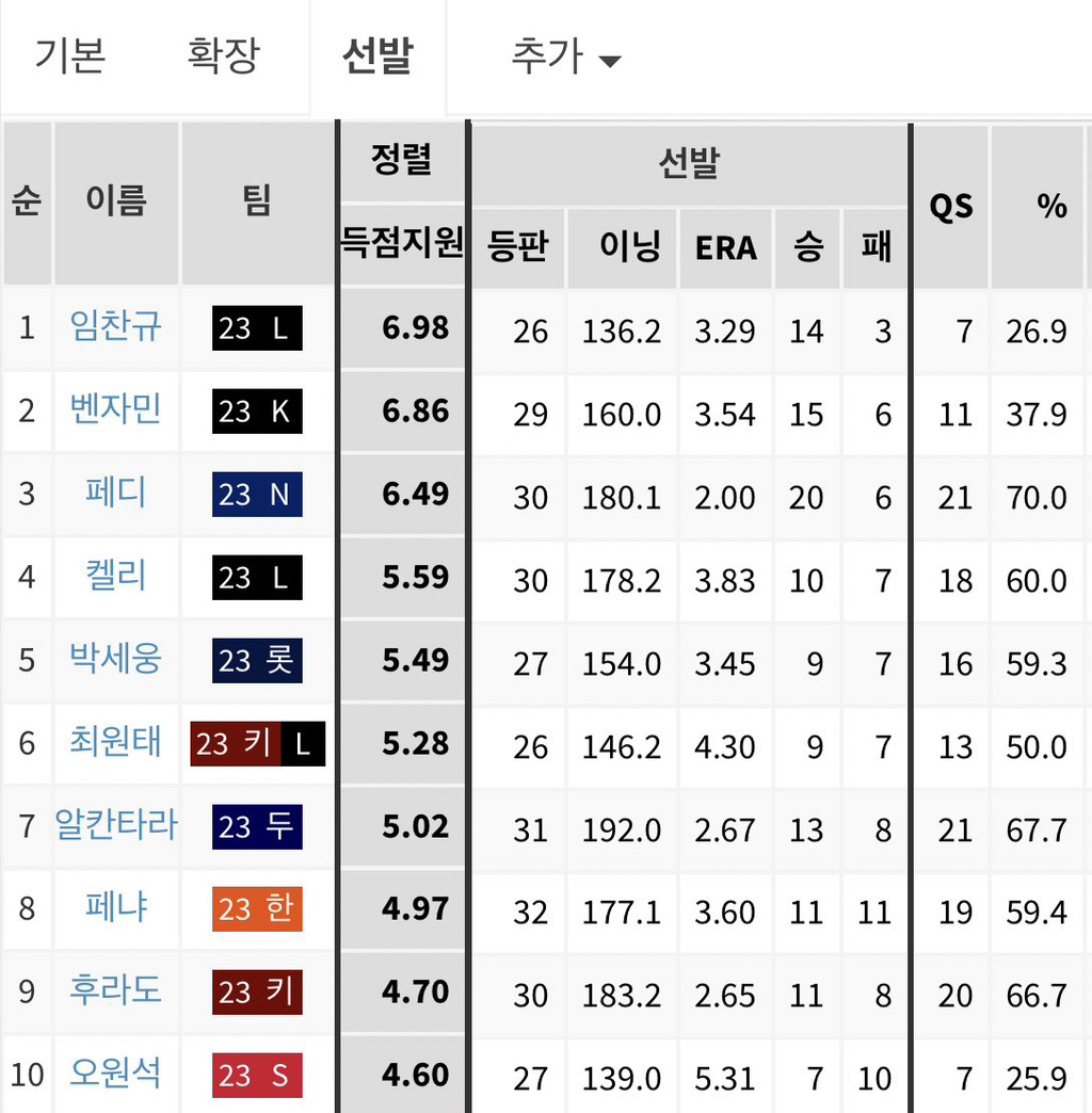 빠따 1위 팀에서 타자들에게 가장 사랑받는 선발투수가 뭔지 보여줘