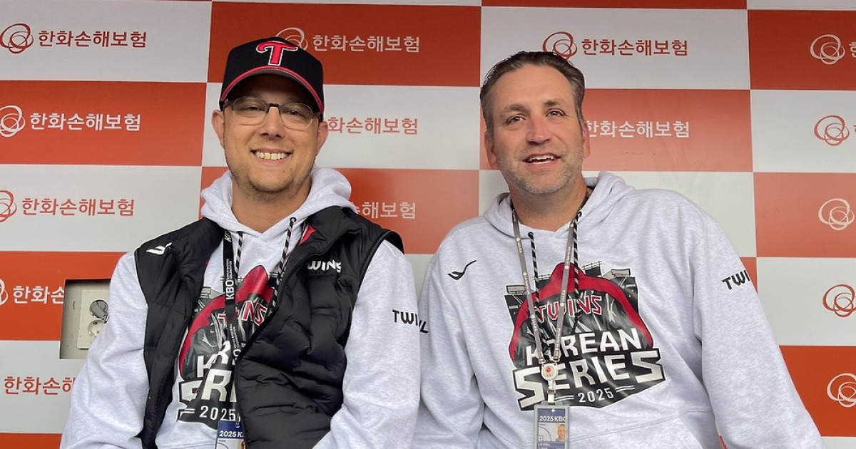 (대전=연합뉴스) 이대호 기자 = 프로야구 LG 트윈스의 정규시즌 1위를 이끈 '1선발' 앤더스 톨허스트를 발굴한 LG 외국인 스카우트 2명이 한국시리즈(KS) 현장을 찾아 소속팀의 우승을 응원했다. LG