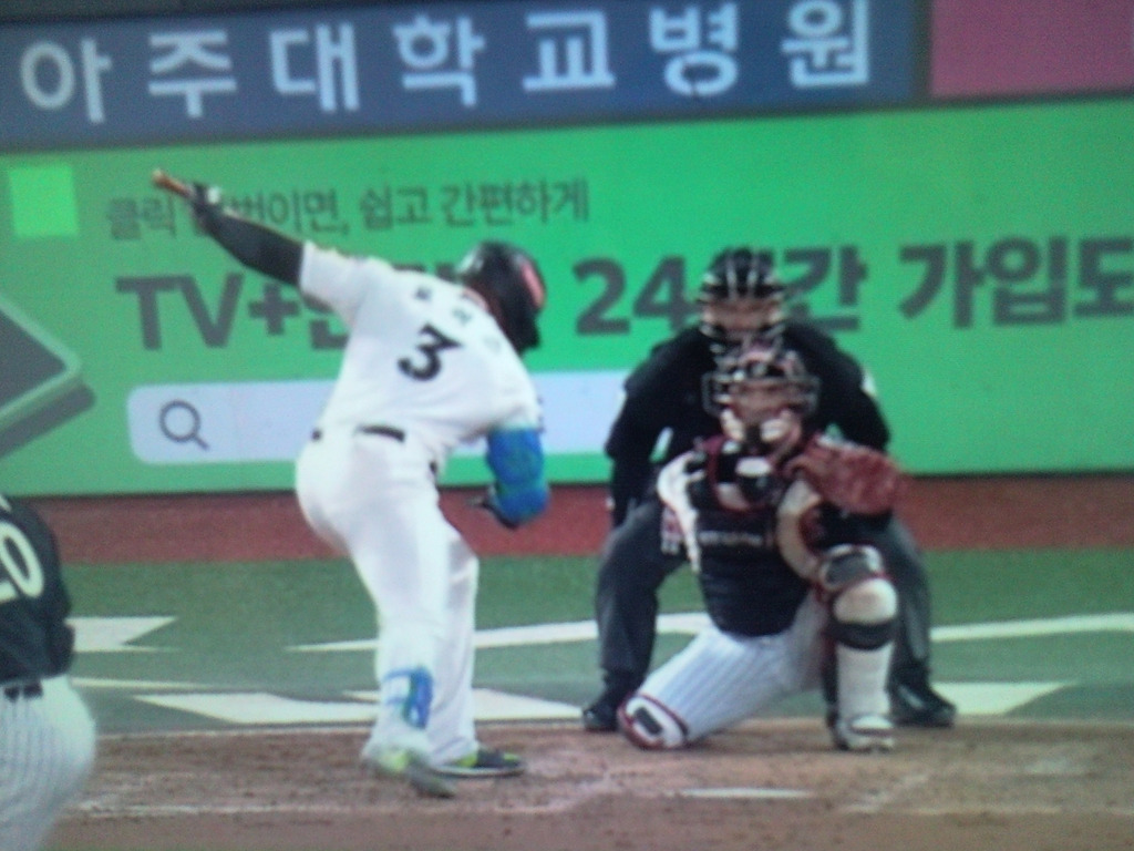 지금 1루로 나갔으니 홈으로 들어와 동점으로 만들길 원합니다. 파이팅...!