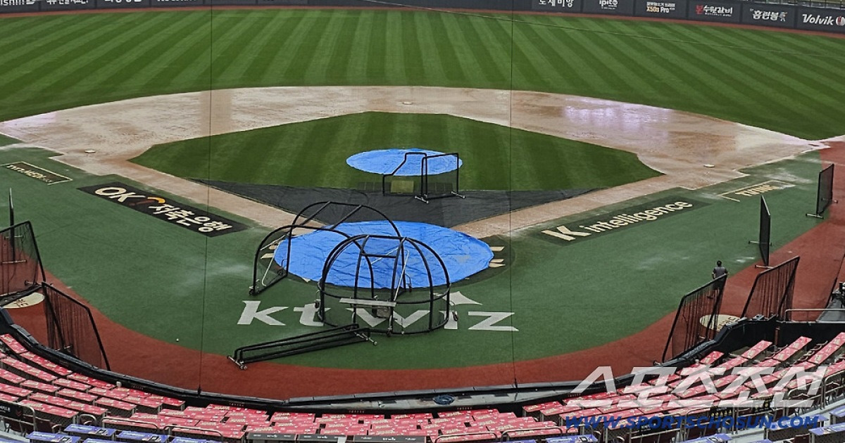방수포 열었을 때 기습 폭우로 결국 취소. 18일 DH 확정. 소형준-치리노스 1차전 맞대결[수원 현장]