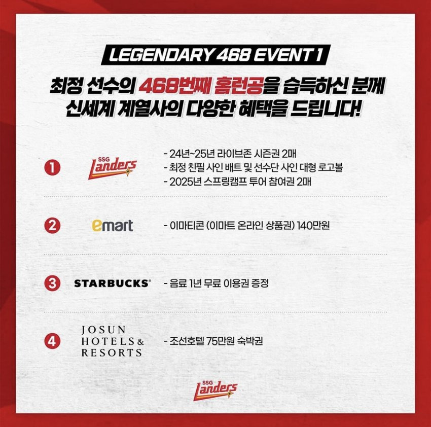4. 이마트 상품권 140만원 (최정 등번호가 14임)