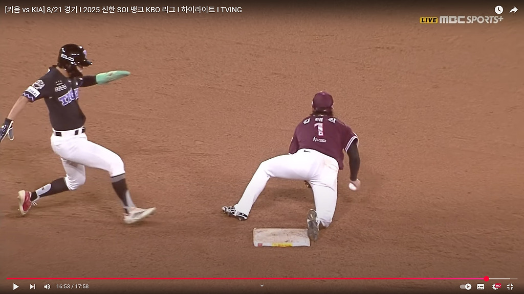 안 던져 세이프를 줬다..베이스에 서 있는 선수 짤라 들어 가는 선수