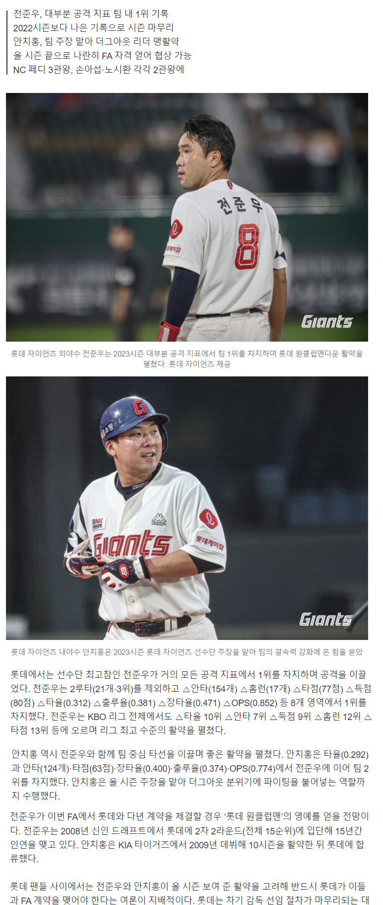 롯데 이대호 떠난 자리, 전현직 주장 전준우· 안치홍이 메웠다