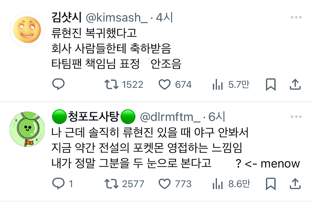 류현진 복귀 소식을 들은 9개구단 팀 반응