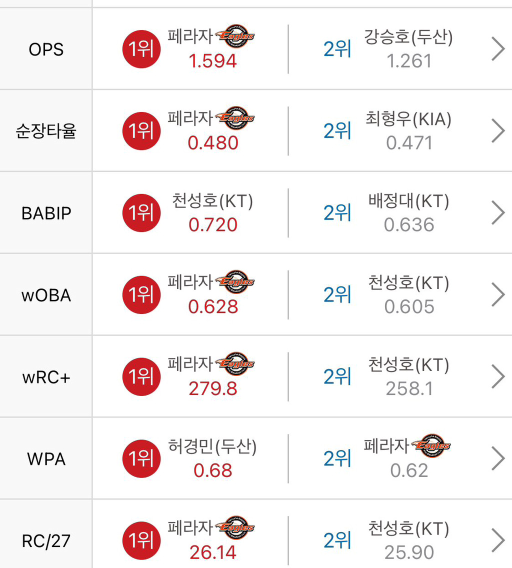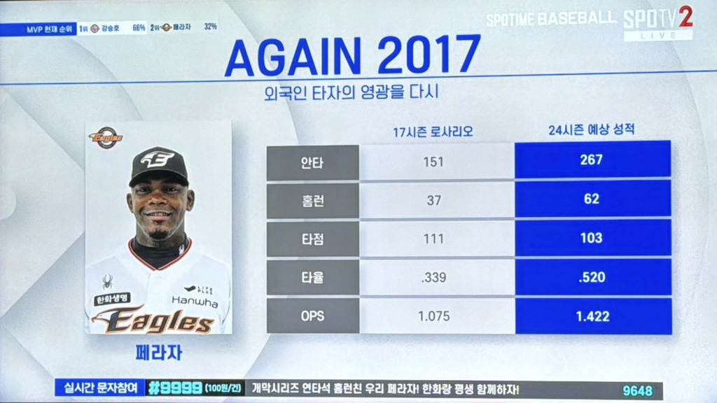 스포티비 피셜 : 페라자 지금 267안타 63홈런 페이스ㅋㅋㅋㅋㅋㅋㅋㅋㅋㅋ