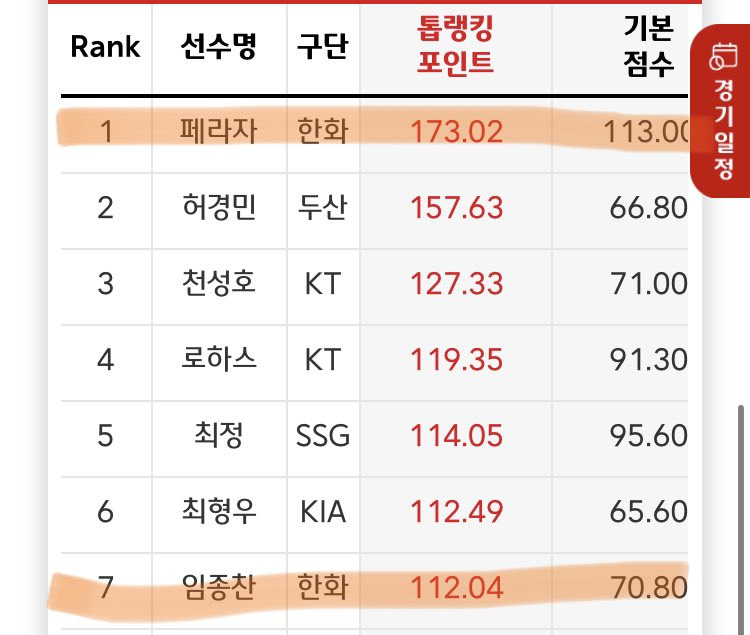 웰뱅톱랭킹 타자순위 1위