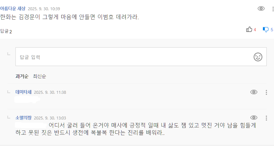 덧글 따라와서 욕하면서 비방인데 이런사람 글에 추천누르는 사람들이 문제있어보임