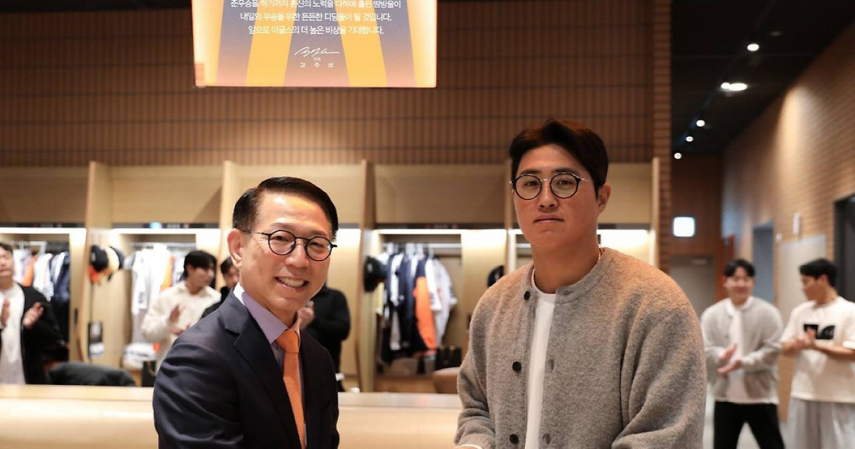 "한국시리즈 준우승을 축하합니다" 통 큰 회장님, 오렌지색 신상 휴대폰 60개 선물했다