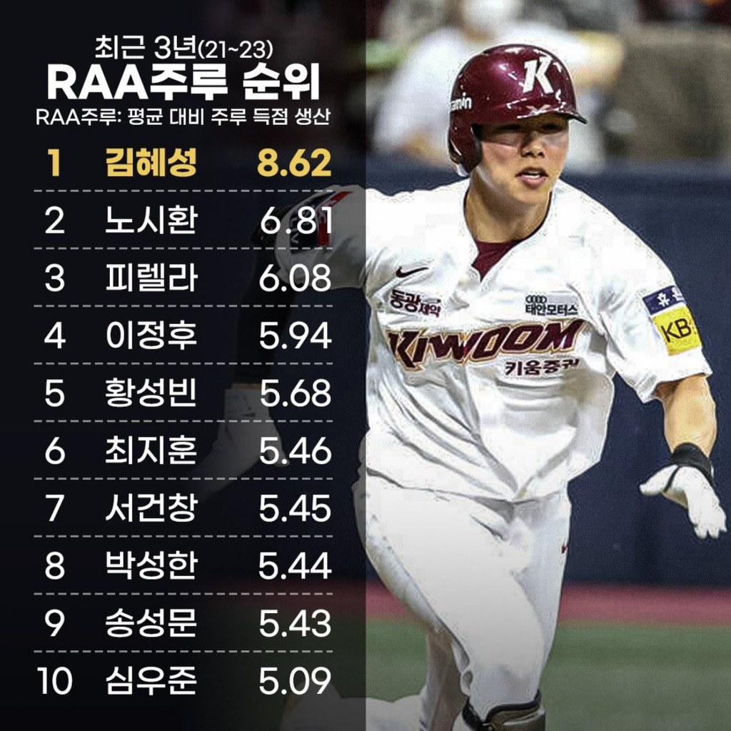 최근 3년 주루 순위 보는데