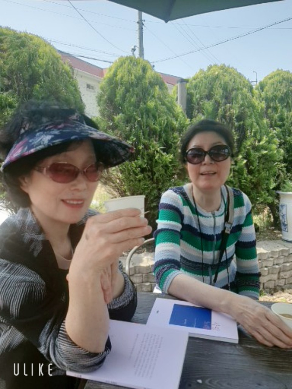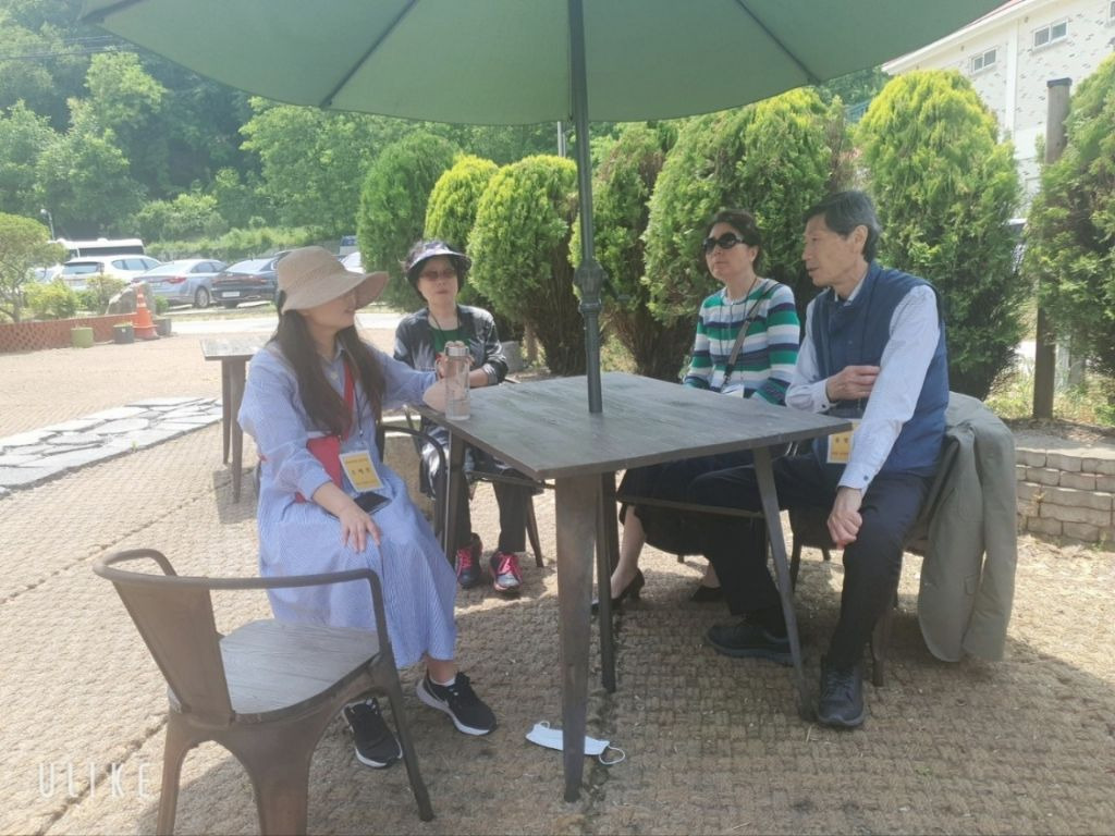 식사후 식당 앞 싱그러운 초록빛 테라스에서 화기애애한 분위기속에서